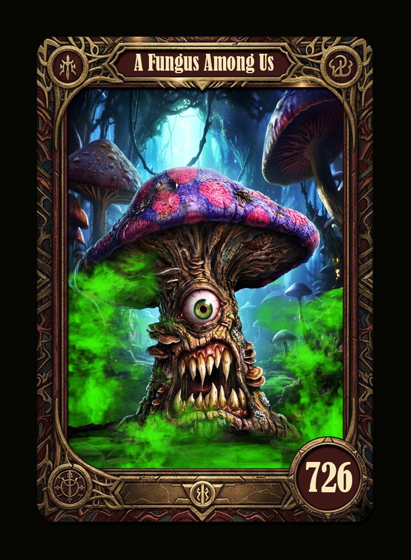 Deep within the lightless groves of the Forbidden Mycelium, A Fungus Among Us stands as a groaning, sentient tower of decay. Its trunk-like body is twisted with ancient, fungal grooves, dominated by a single, bloodshot eye that pulses with a sickly green light. Its purple-and-pink cap isn't just for display—it acts as a biological pressurized tank, ready to rupture and release clouds of toxic, mind-altering spores at a moment's notice.