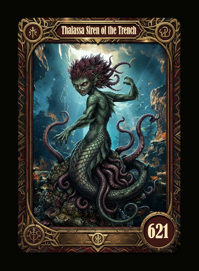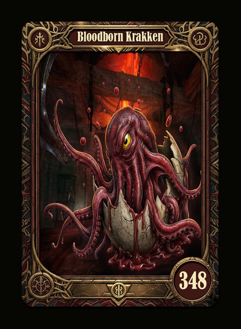 From the churning, iron-scented depths of the Sanguine Sea rises the Bloodborn Kraken. A terrifying leviathan of both flesh and fluid, this entity is less an animal and more a sentient oceanic catastrophe. Its massive, deep-red mantle is crowned with jagged, obsidian-like protrusions, and its primary eye—a swirling vortex of golden malevolence—can track the vibrations of a single heartbeat through miles of water.