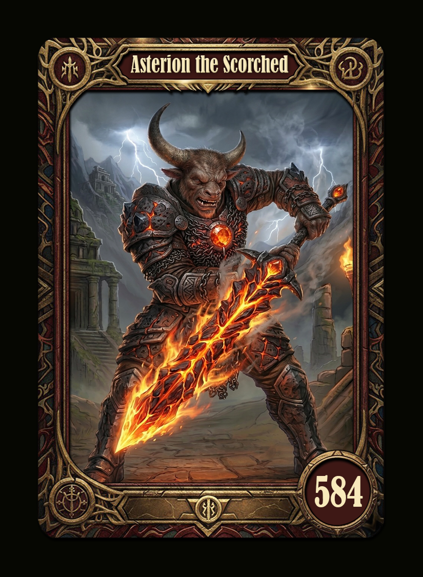 It exists in a constant state of dual nature—at once a prisoner of its heavy shackles and the undisputed master of the fire that surrounds it. In the world of Monsters of War, it serves as a chaotic heavy-hitter, capable of turning the battlefield into a literal furnace where only the strongest survive.