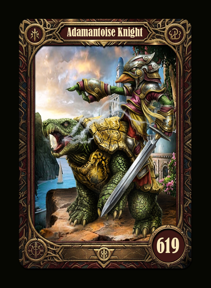 Patrolling the sun-bleached ramparts of the High Citadel, the Adamantoise Knight is a testament to the enduring bond between the Citadel's avian defenders and the ancient earth-bound titans of the coast. Clad in ornate, lacquered armor that mirrors the vibrant plumage of his kin, the Knight directs the flow of battle with a confident point of his gauntlet. Beneath him, his massive Adamantoise mount—a creature whose shell is as impenetrable as the fortress walls themselves—lets out a low, tectonic rumble, ready to crush anything in its path.