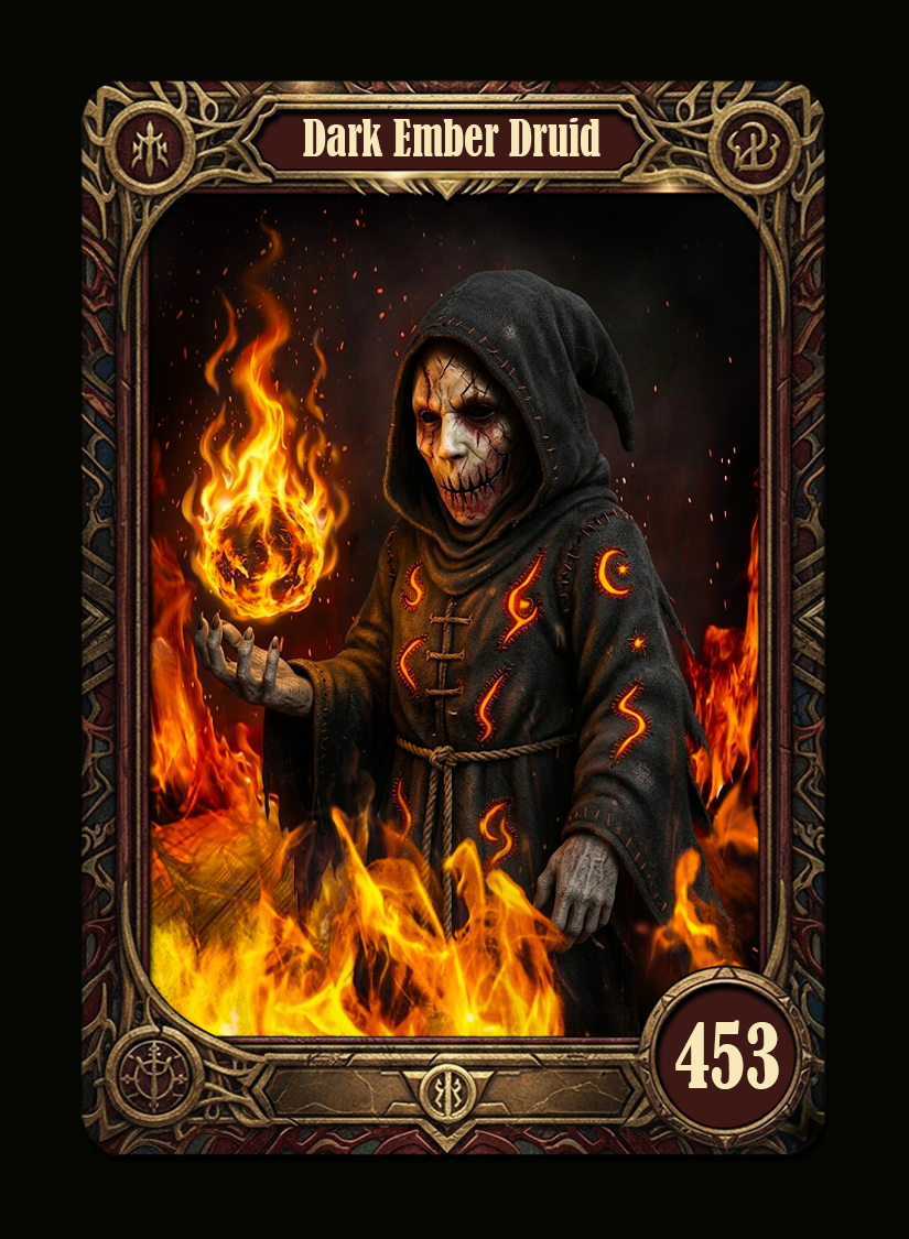 The Dark Ember Druid is the embodiment of "contained destruction." It does not strike with reckless abandon like Dinn Jinn; instead, it carefully places its embers like traps, waiting for the perfect moment to ignite the air around its enemies. In Monsters of War, it acts as a strategic fire-controller, turning the environment into a weapon against anything that breathes.