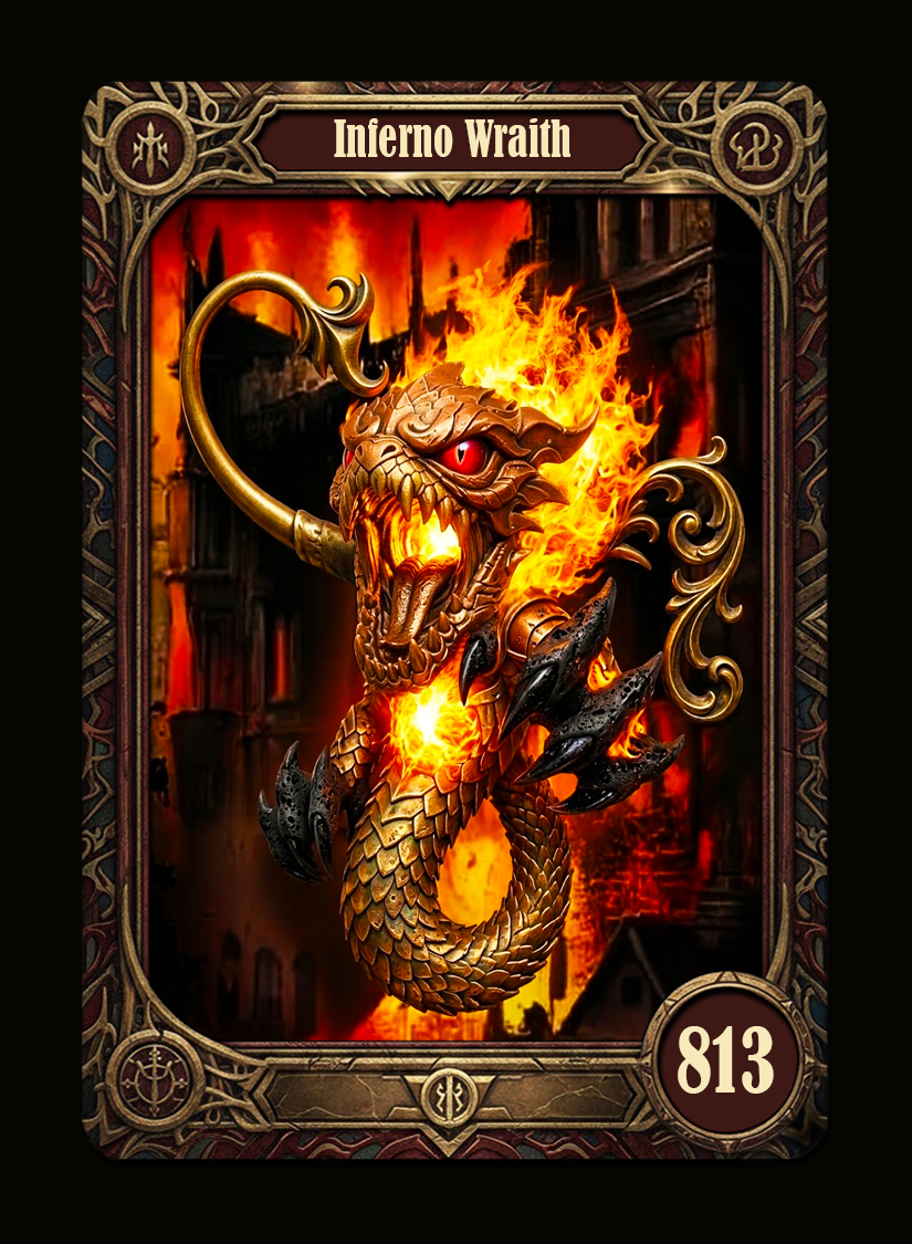 In the deepest pits of the Obsidian Vaults, where even the sturdiest iron melts, the Dark Ember Wraith serves as the eternal stoker of the forge. A terrifying fusion of shadow and heat, this hooded entity is draped in black robes etched with glowing, molten runes that pulsate with the rhythm of a volcanic heart. Its face is a hollowed mask of jagged teeth and sunken eyes, and its hands—scorched to a sickly green hue—cradle a flame that never goes out, regardless of how much oxygen is present.